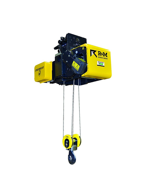 15 Ton R&M Spacemaster SX Normal Headroom Monorail Electric Wire Rope Hoist & Trolley – 19ft.8in 13/2fpm 65 FPM VFD Trolley Three Phase 460