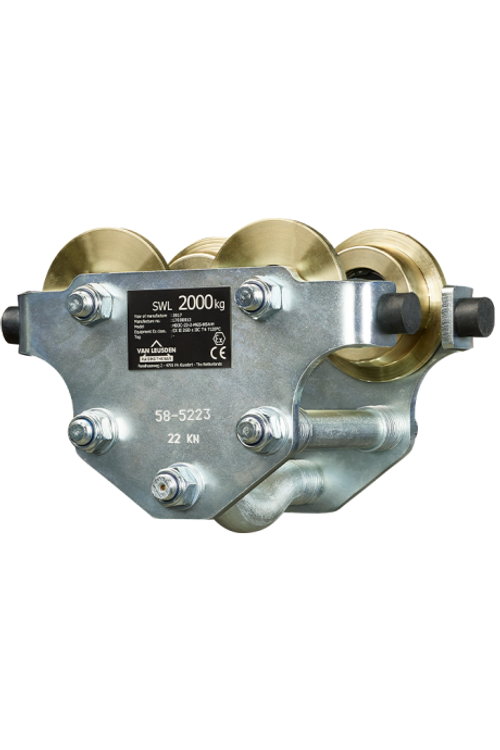 The reliability, operational smoothness, and safety of your hoist depends on the trolley. Contoured wheels that fit both tapered and flat-flange beams, lifetime lubricated bearings, and a low-turn radius are just some of the benefits of the HD3C spark resistant push/pull trolley.