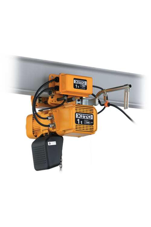 One smooth operator.How do you move five tonnes across a factory floor safely and easily? Here’s how: add an MR2 motorized trolley to your Kito ER2 electric hoist and you’ll increase productivity and decrease unwanted movement so you can easily direct your load. Opt for an adjustable two-speed unit with a variable frequency drive (VFD) and you’ll also be able to set your speed preference and ensure super smooth starts and stops every time.